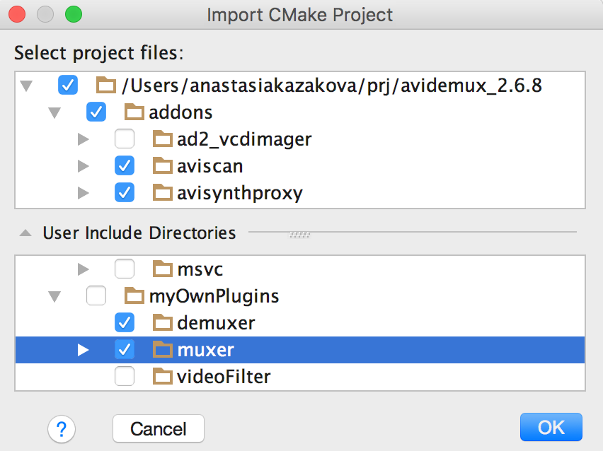 如果您希望手动将目录标记为库或项目源/头文件,或者剔除部分目录(比如来自 CMake 项目结构的独立性),那么您可以使用将目录标记为功能。 这将影响创建索引(比如您可以删除创建索引的过程中产生的建构目录、二进制文件、日志和生成的数据),以及代码生成、重构和导航。 查看更多详情。