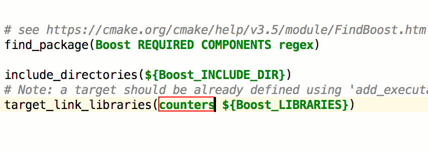 如果您在 CMake 中使用 Rename 重构 Shift+F6 来更改用户符号的名称(比如函数或宏),那么将自动更新所有用法。