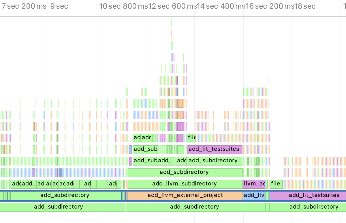 您可以在 CLion 中目视检查为什么重新加载您的 CMake 项目需要很长时间。 从 CMake 3.18 开始,在 CMake 设置中可以启用新的跟踪。 CLion 将帮助您运行跟踪并呈现结果。 了解详情。