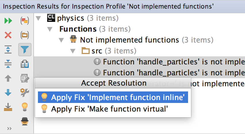 如果您希望消除所有基本代码中的特定问题,您可以使用按名称运行 检查 (Ctrl+Alt+Shift+I),然后选择范围。 将打开一个单独的窗口,其中包含检查结果,您可以在这里将问题重新分组,并向所有问题批量应用快速修复(如适用)。