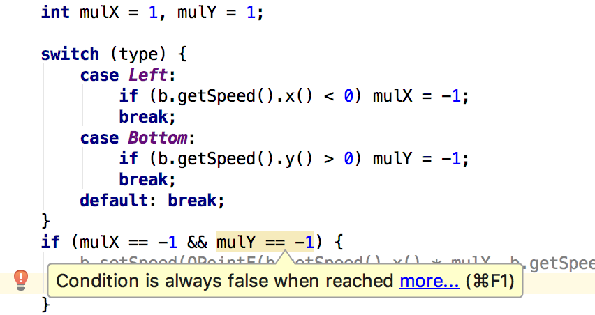 CLion’ 的实时代码检查覆盖了 C/C++ 代码中的 40 种潜在问题案例以及其他 语言的几种问题案例。