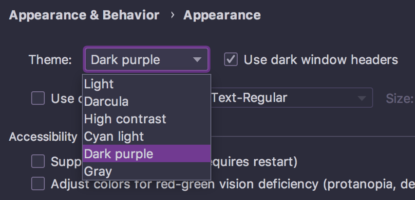 如果您喜欢带有连字的字体(比如 FiraCode、Hasklig、Monoid 或 PragmataPro),那么请前往 Editor | Colors & Fonts | Font 设置,选择对应的字体,然后选择 Enable font ligatures 选项。