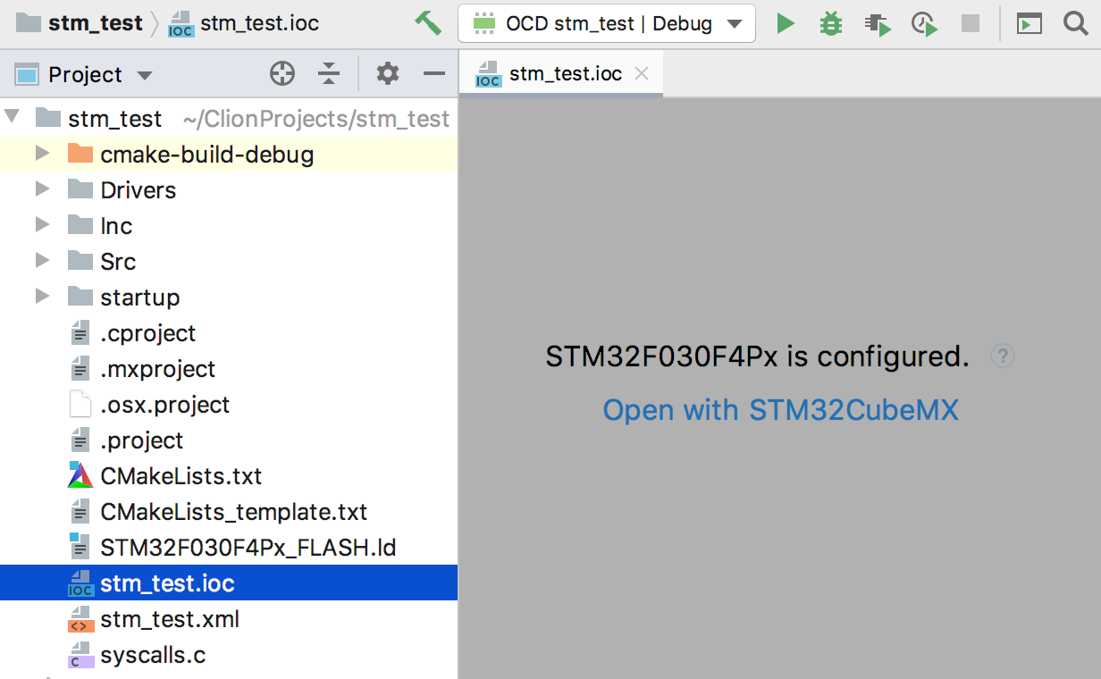 如果您在开发 STMicroelectronics 面板,您会非常高兴地知道 CLion 现在与 STM32CubeMX 集成: