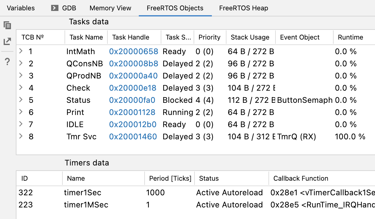 如果您是在 CLion 中使用 RTOS 调试应用程序,现在可以使用带有任务列表的视图。 您可以切换到感兴趣的任务,探索任务变量,等等。 支持 FreeRTOS、Zephyr 和 Azure RTOS。