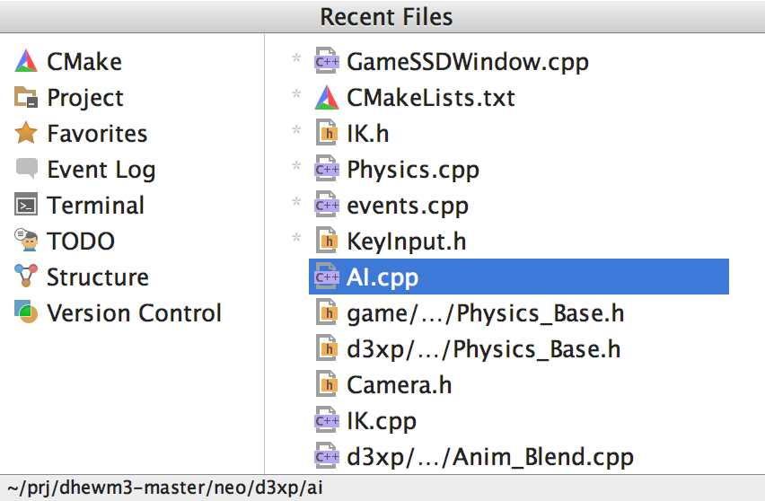 CLion 提供多种视图,可以帮您浏览代码并鸟瞰整个