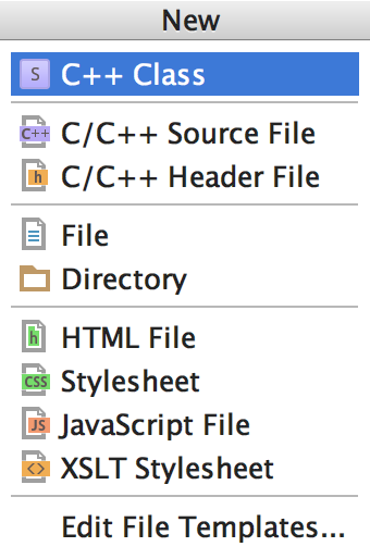 您可以使用 New 菜单向项目中添加新文件。 在 Project 树形视图中,按下 Alt+Insert 或者在上下文菜单中选择 New。