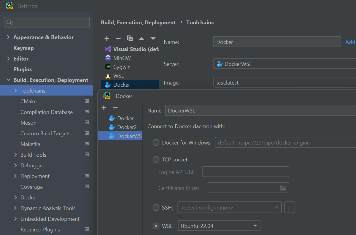 如果您的项目包含 Docker 文件和基于 Linux 的环境,并且您想通过 Windows 计算机在其中开发应用程序,那么您可以使用 WSL 和 Docker 在 CLion 中进行设置。