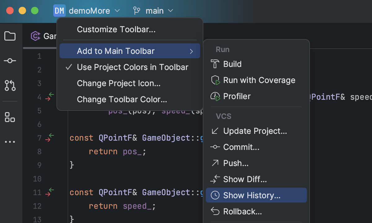 CLion 引入了彩色标题,可以简化多个打开的项目之间的导航。 现在,您可以为每个项目分配唯一的颜色和图标,使其在工作区中更易区分。