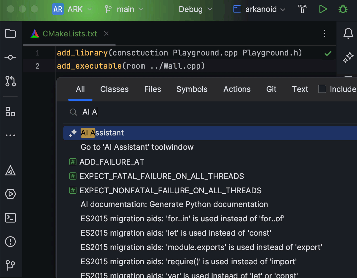 CLion 2023.2 重新构想了 PlatformIO 集成,改进了对 vcpkg 的支持,包含 AI Assistant 功能,将其自然融入一些核心 IDE 用户工作流,并改善了低级、远程和嵌入式调试的体验。