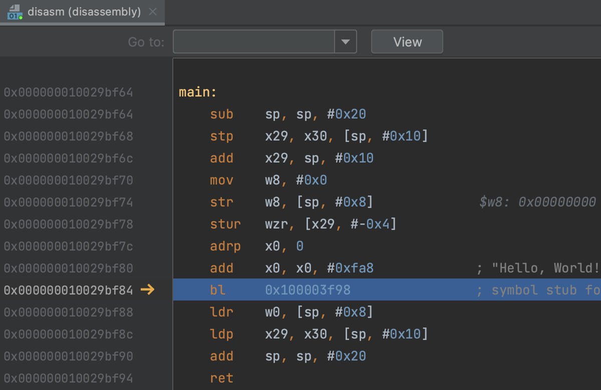 CLion 现已支持 ARM 汇编语言,因此您将在反汇编视图中看到 ARM 汇编器的代码高亮显示。
