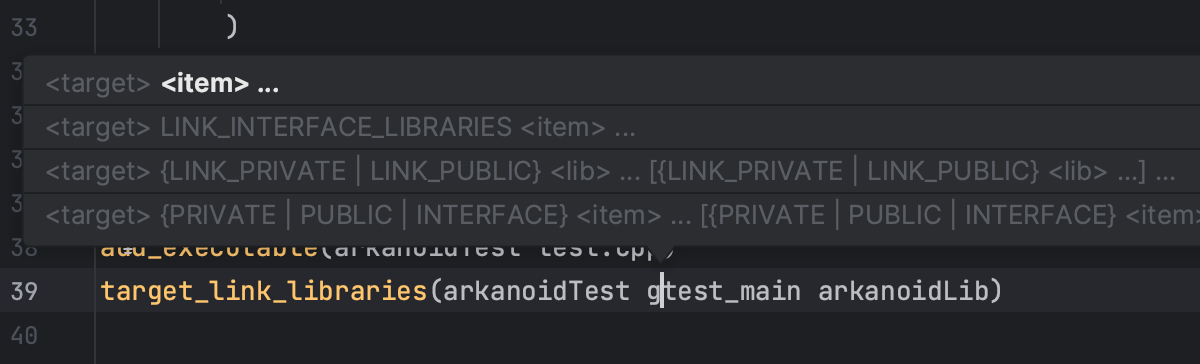 Parameter Info(形参信息)弹出窗口会在您输入时显示签名变体,并且现在可用于 CMake 命令。 它可以帮助您确定接下来要输入什么形参,特别适合具有多个变体的命令。