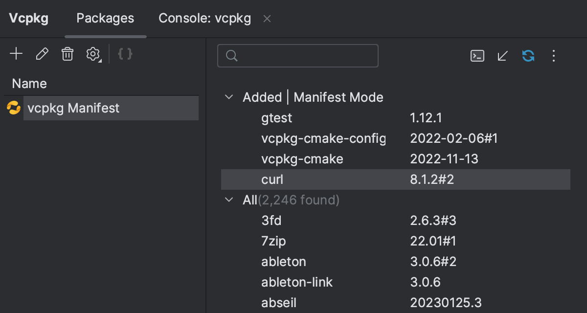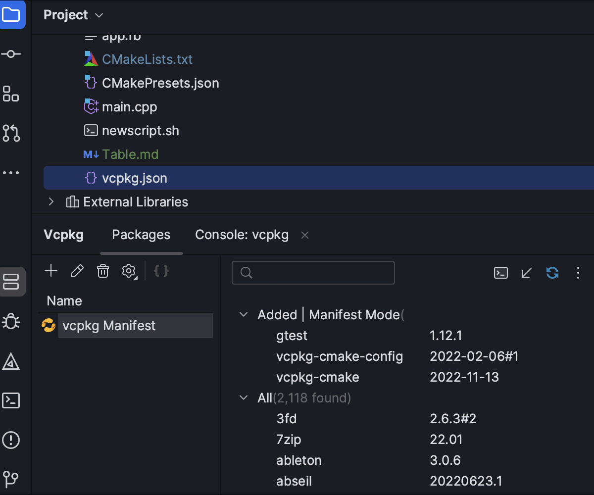 为了帮助您管理项目依赖项和外部库,CLion 集成了 C/C++ 软件包管理器 vcpkg。 在 v2023.2 中,集成得到重大更新,扩展了支持的场景数量。