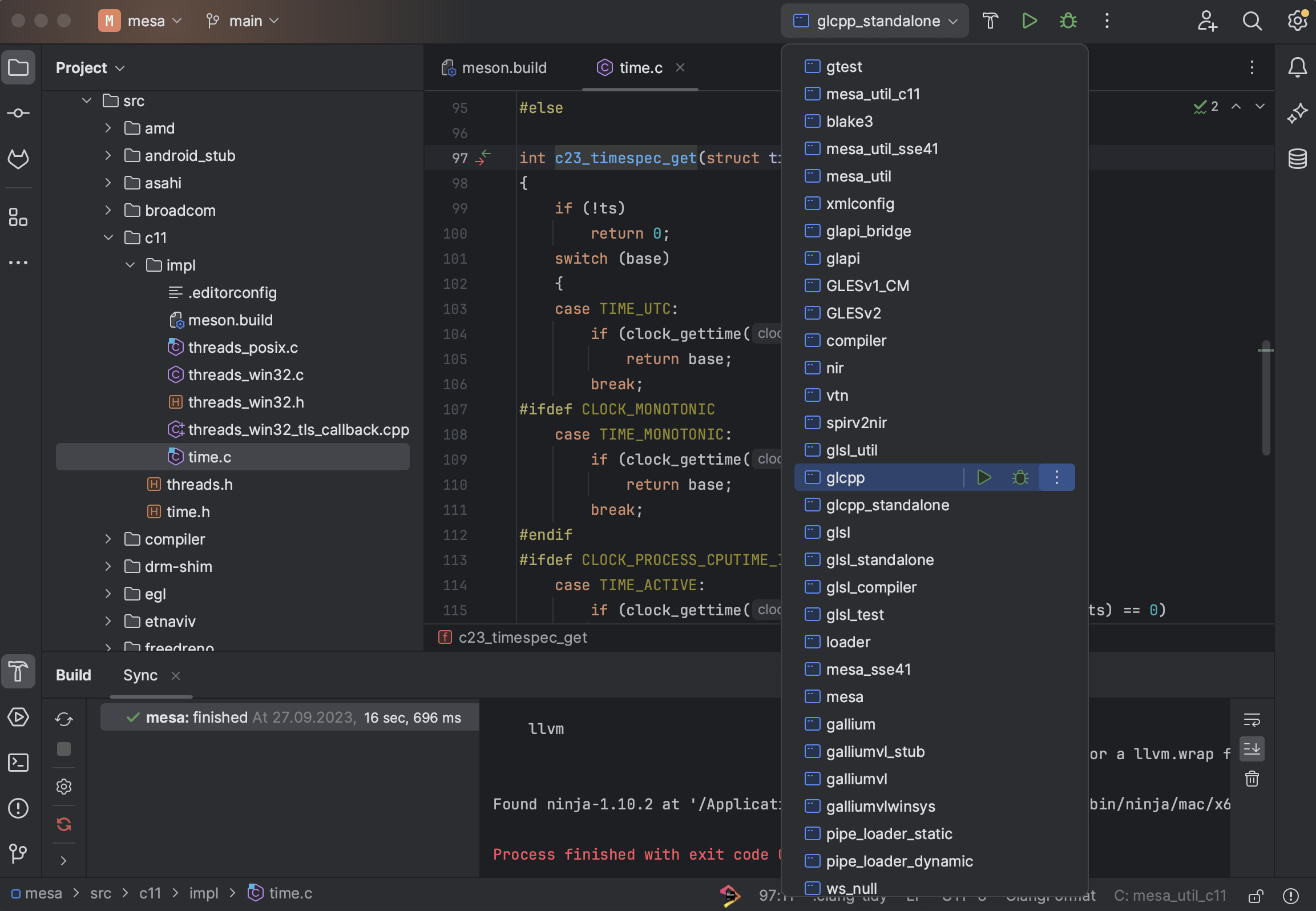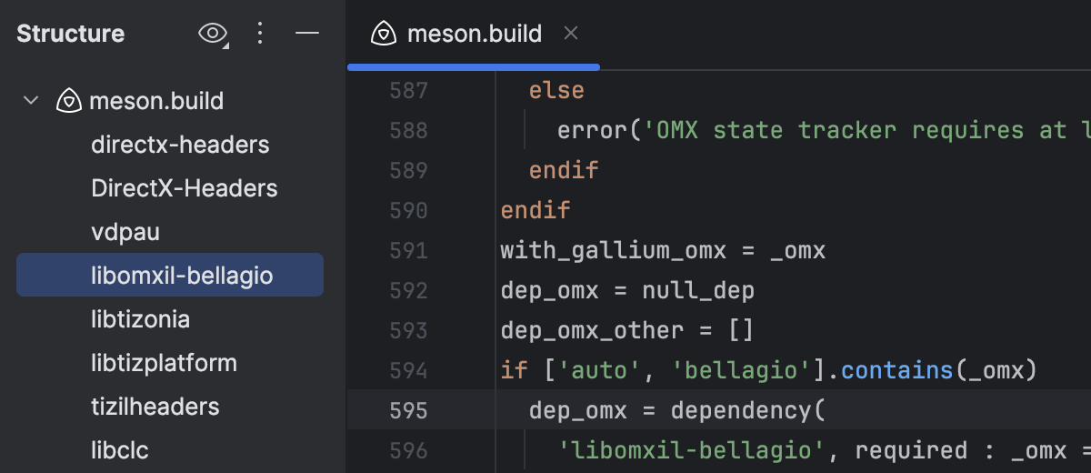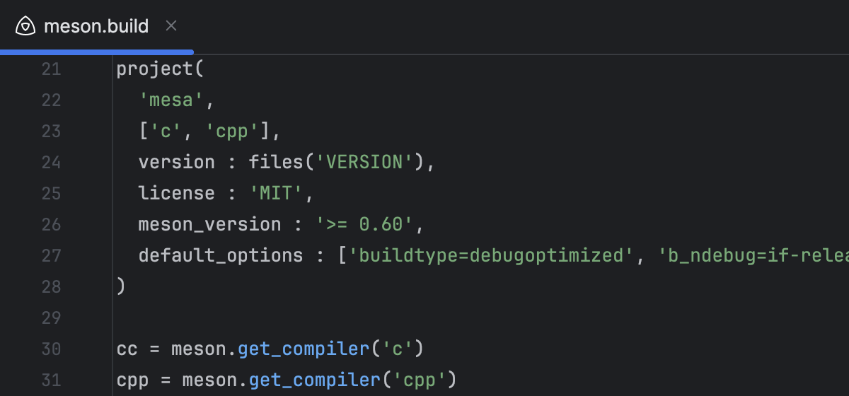 strip_include_prefix 实参,在查找包含的头时使用正确的路径。 local_repository 或 new_local_repository 在 WORKSPACE.bazel 中添加的项目现在可以在 CLion 中正确同步和索引。 CLion 现在支持 Meson! 您可以在 CLion 中打开 Meson 项目并构建、运行和调试。 Meson 项目支持所有平台以及所有本地和远程工具链,包括 WSL 和 Docker。