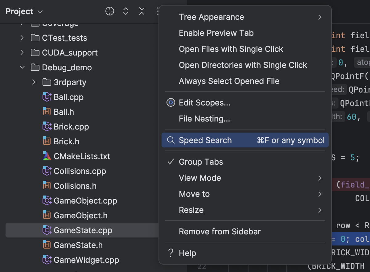 CLion 尽其所能帮助您理解代码的实际用途并在代码库中搜索 bug。 新的 Run to Cursor(运行到光标)嵌入选项可以加快调试器中代码的导航速度,文件的 Assembly(程序集)视图则适用于查找 bug 或优化代码的运行时性能。