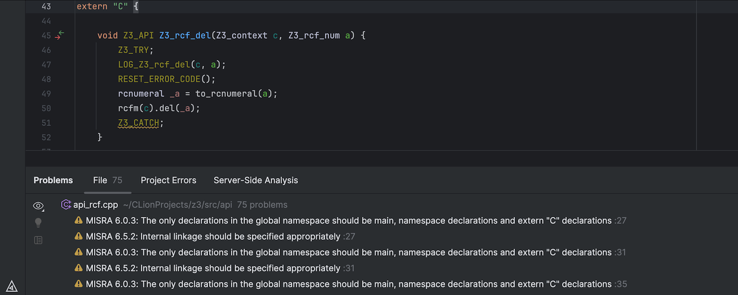 MISRA C++:2023 是 MISRA C++ 的最新版本,为在安全关键型系统中使用 C++17 提供了指导。 CLion 的静态分析工具包现在包含大量 MISRA C++: 2023 检查。