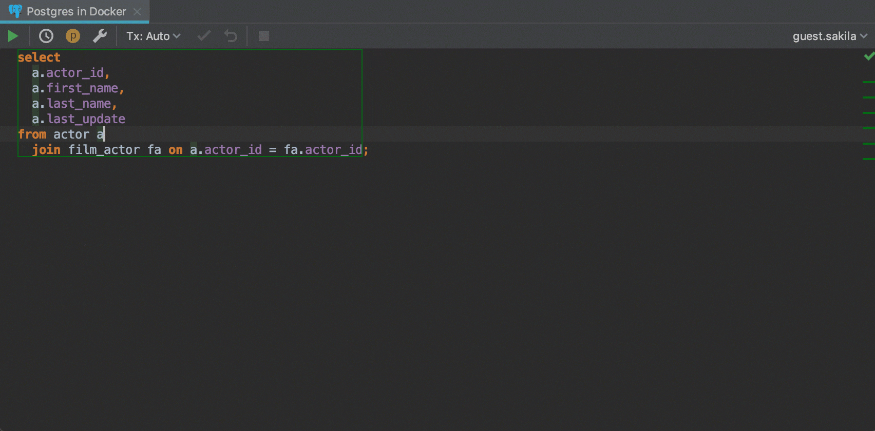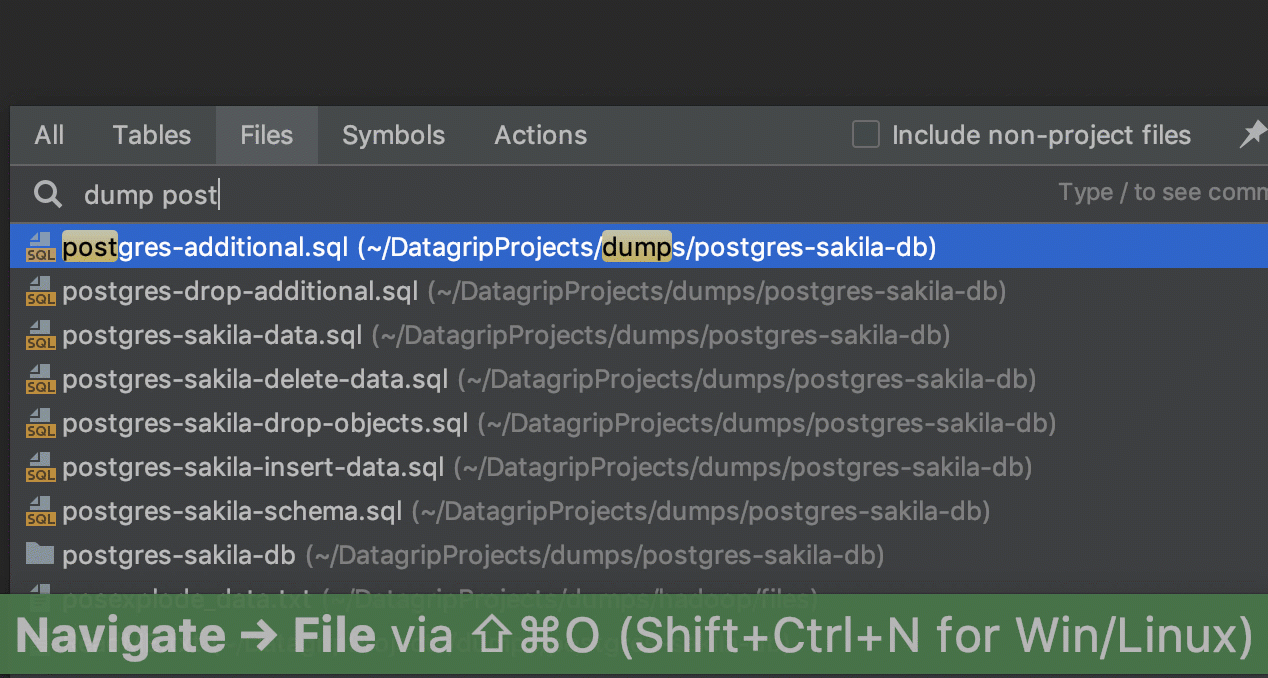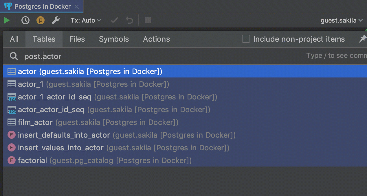 毫不夸张地说:这是在基于 IntelliJ 的 IDE 中最重要的功能。 Find action (Ctrl+Shift+A) 将在任务艰巨时助您一臂之力。 如果您知道 DataGrip 中可能有某些功能,但不知道如何才能访问,只需在此处键入。 例如,如果您忘记如何打开一个新的临时文件,请按 Ctrl+Shift+A,键入“scratch file”,然后再按 Enter。 完成!