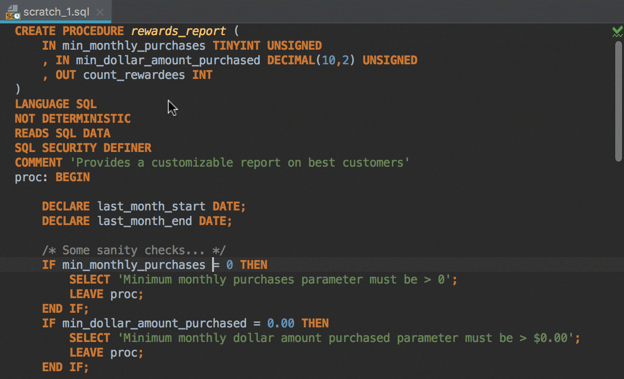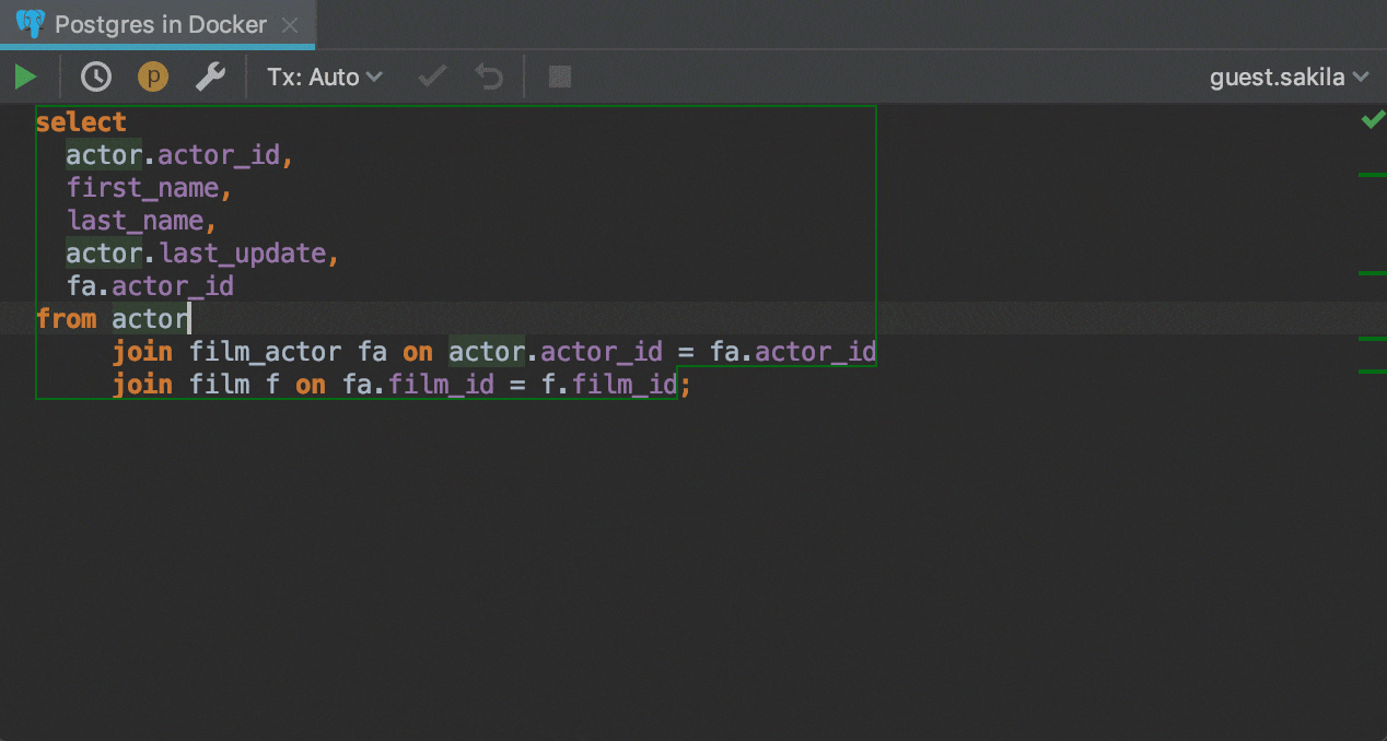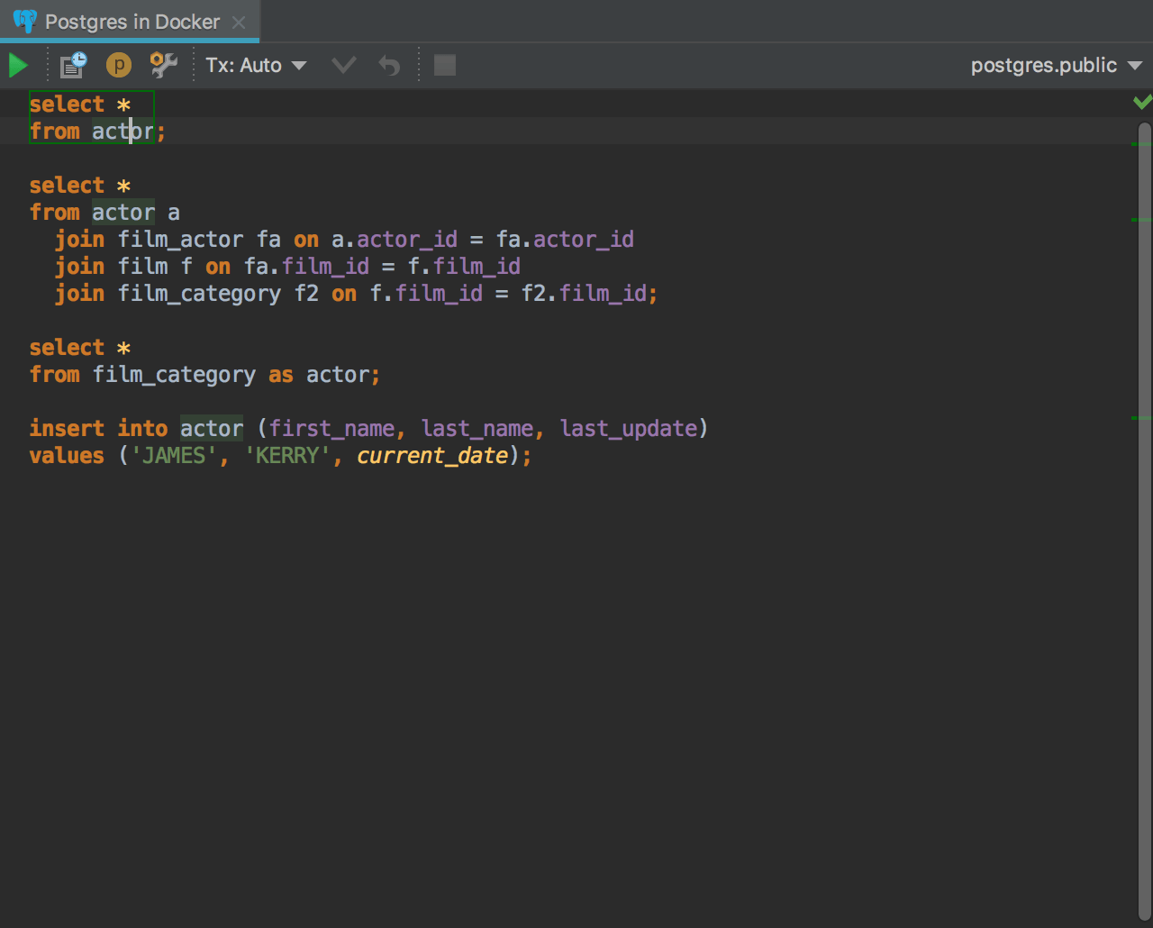IDE 可以正确解析 SQL 文件中的所有表和列引用,并让您可以轻松重命名任何符号和它的用法。