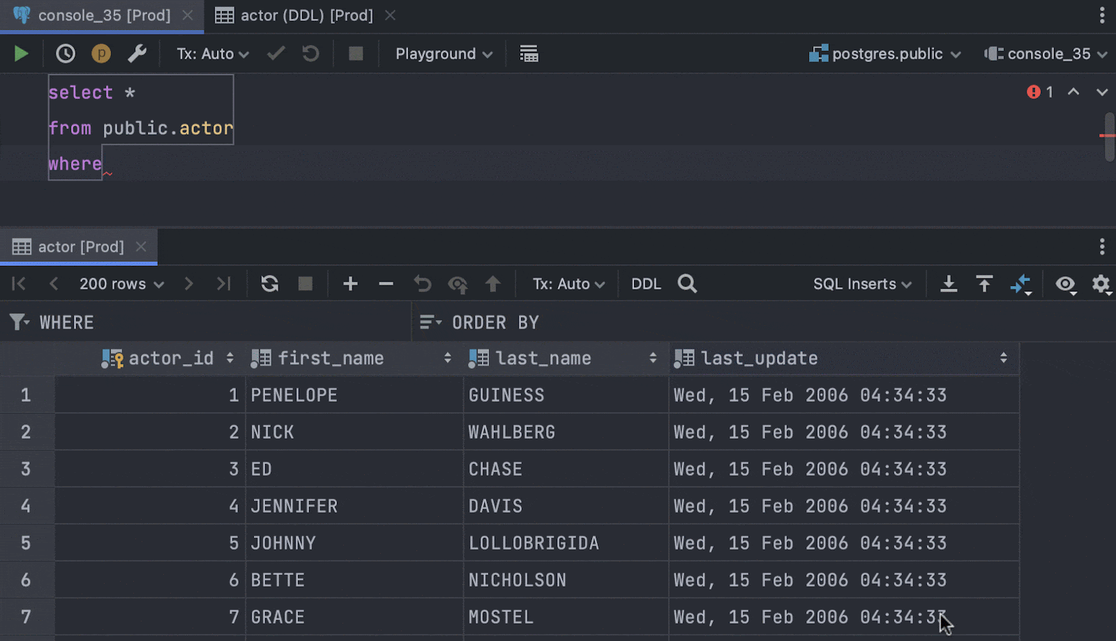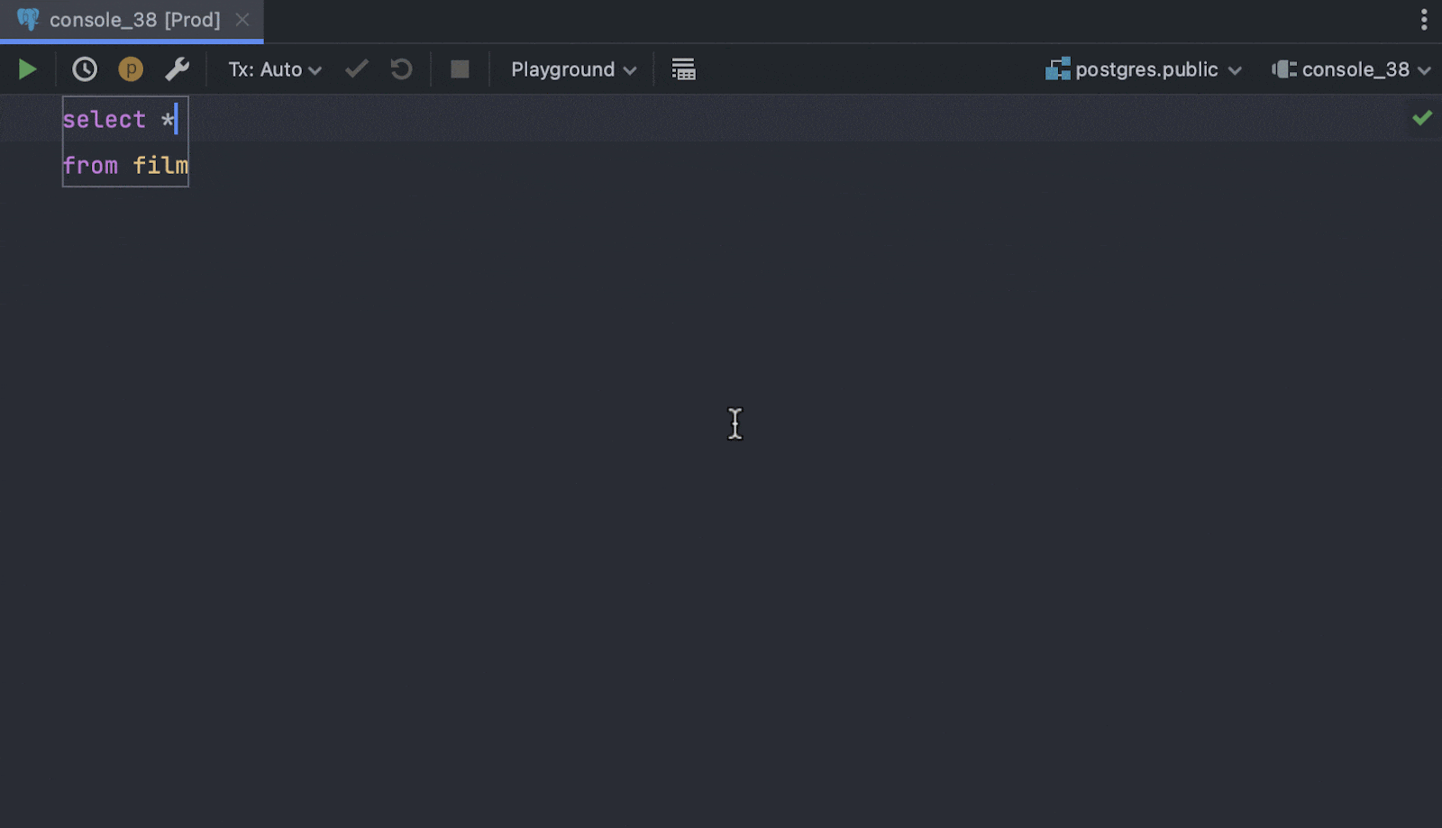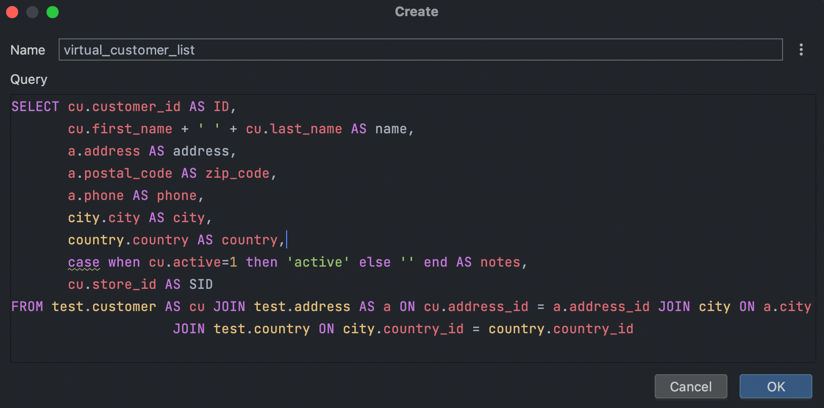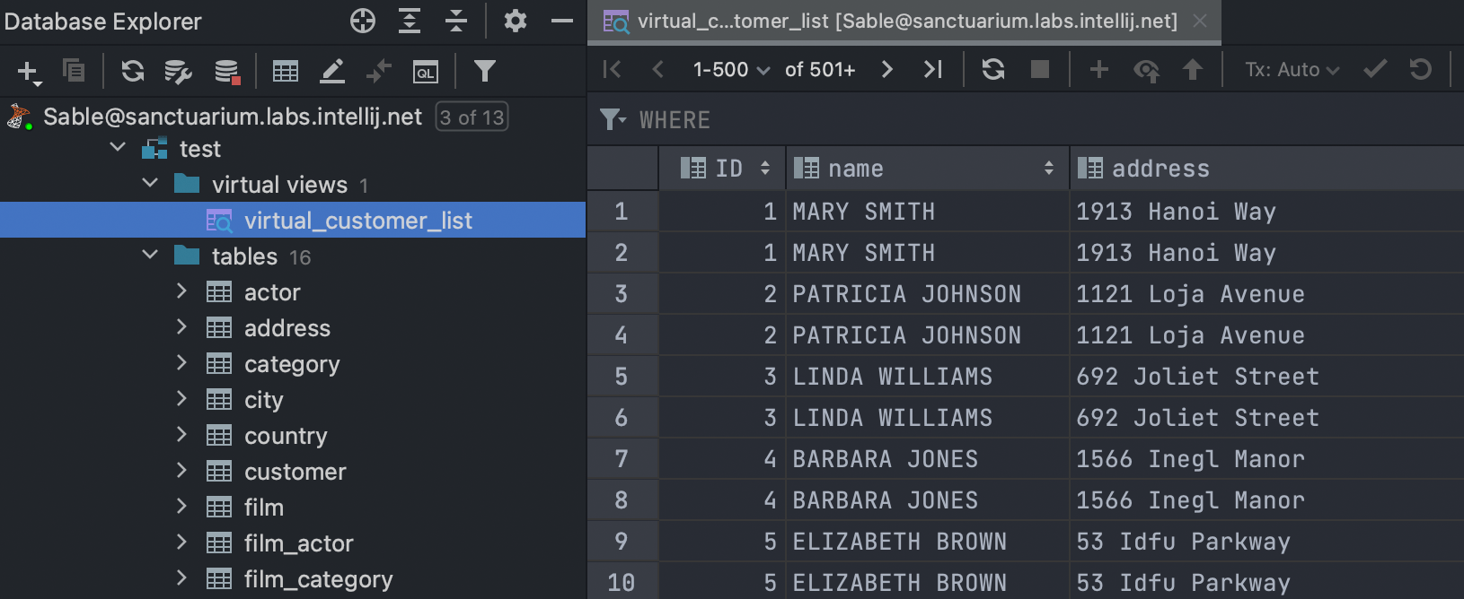 这个新概念也是虚拟的,允许您使用视图而无需在数据库中实际创建。 它基本上只是一个检索结果并存储在 DataGrip 中的查询。