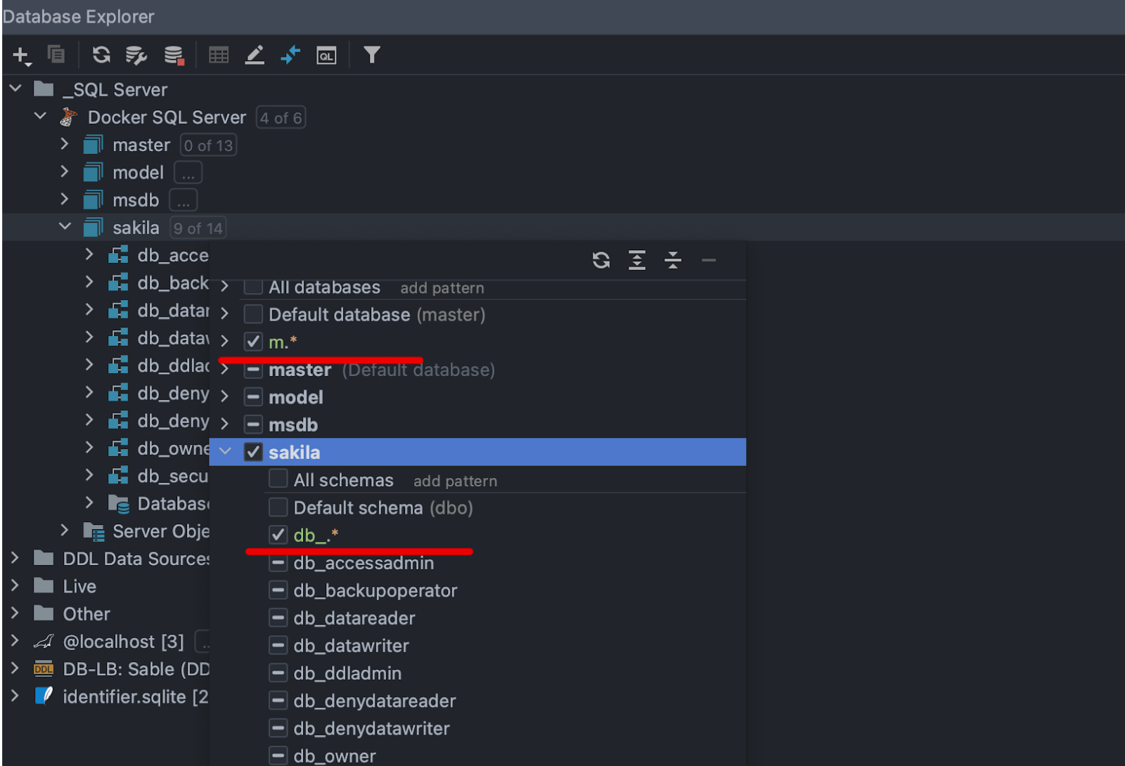 如果您有大量不同的架构,您会喜欢这一增强。 现在,可以根据正则表达式模式选择数据库或架构进行内省。 为此,点击 Add Pattern(添加模式)并在新节点中定义正则表达式模式。 将根据该模式选择数据库/架构。