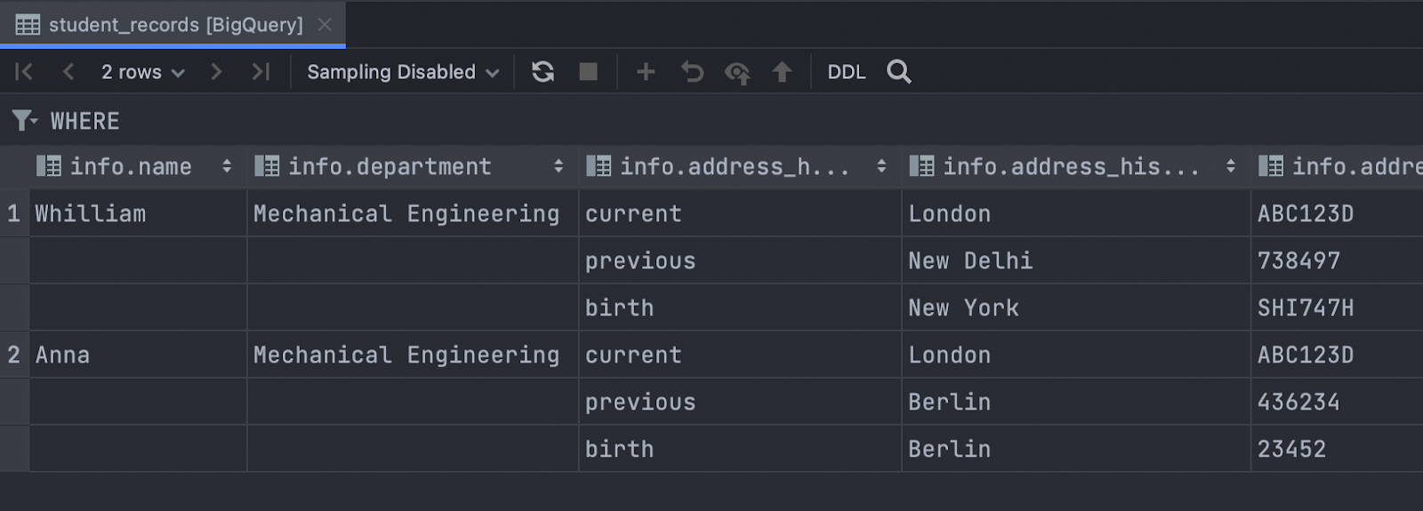 结构体值现在以可读方式显示:每个嵌套值都显示为单独的列。