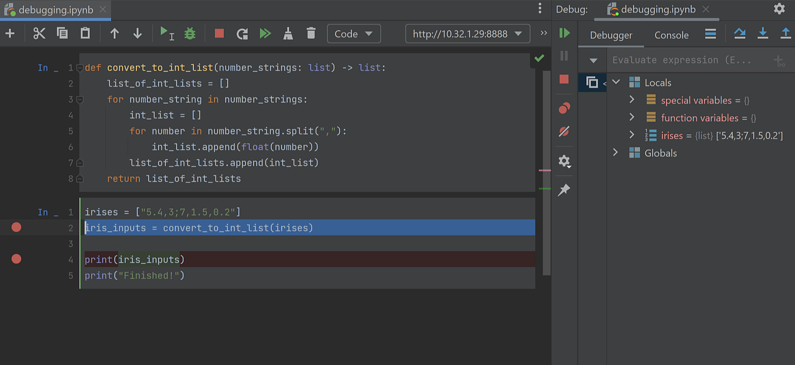 现在,可以在远程 Jupyter 服务器上调试 Notebook,支持 Step Into(步入)和 Step Over(步过)功能。