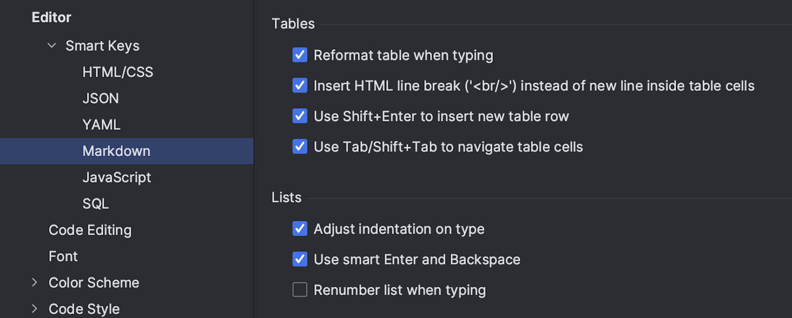 Jupyter Notebook 和 Markdown 文件中的 Markdown 单元获得多项改进,包括更正表格式设置的意图操作、拆分长文本的 Fill Paragraph(填充段落)编辑器操作,以及 Markdown 文件的 Smart Keys(智能按键)设置页面。