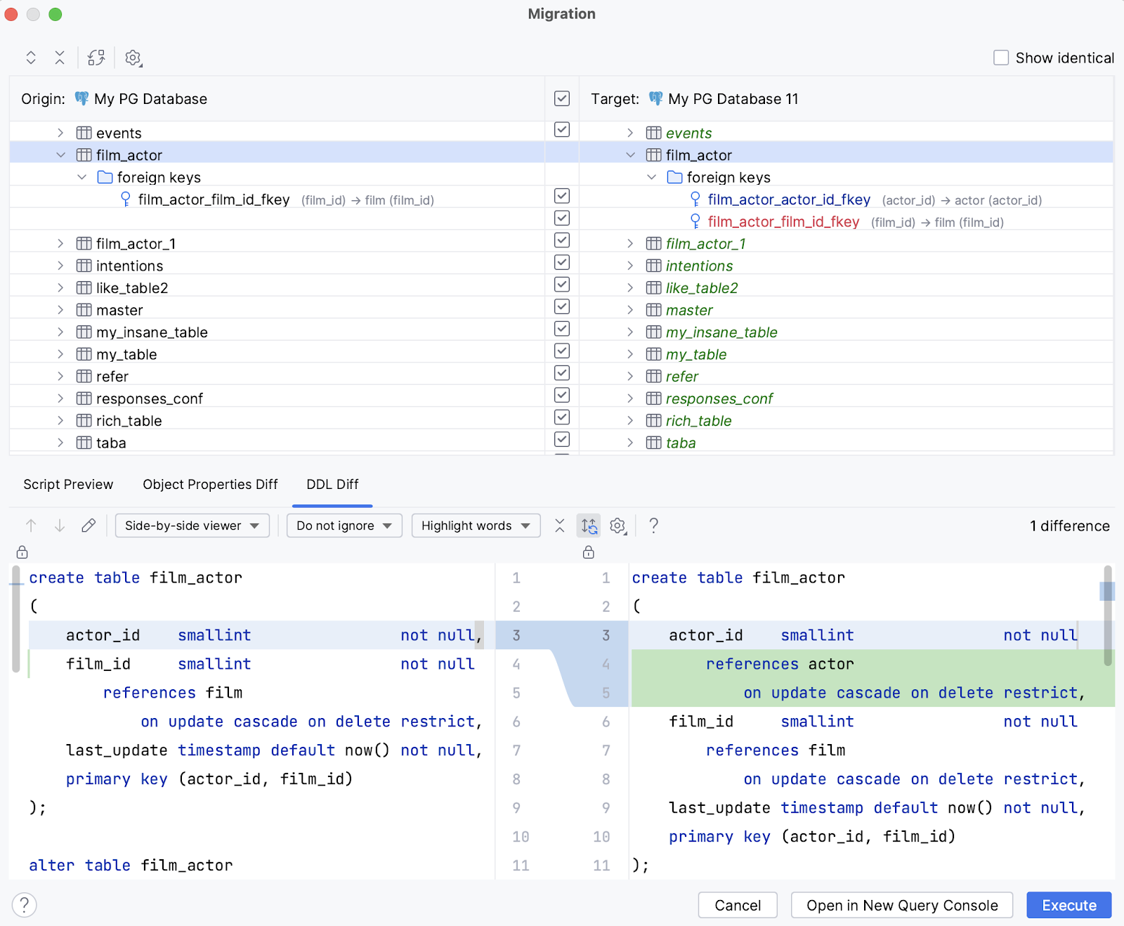 为了增强实用性,我们在此版本的 DataSpell 中显著改进了架构迁移功能。