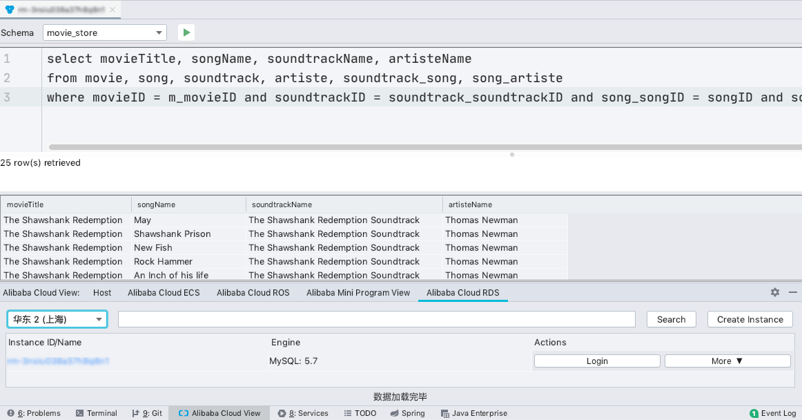 使用 Alibaba Cloud Toolkit 插件,您可以查看/搜索在不同区域中创建的所有 RDS 实例, 可以在面板内部检索实例属性, 並在使用登录后执行查询。