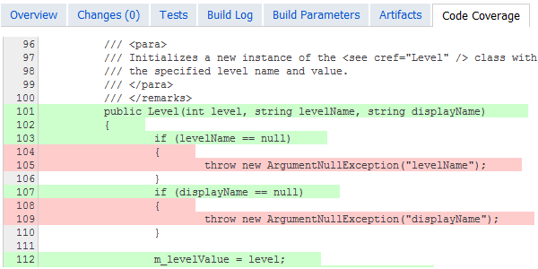 请注意,高亮显示不仅可以显示覆盖和未覆盖的代码,还可以显示覆盖单元测试的结果。 绿色表示测试通过,红色表示至少有一个覆盖语句的测试失败。 灰色显示未覆盖的代码。