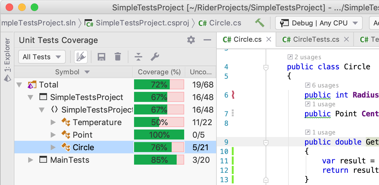 dotCover 的一个主要用例是分析单元测试覆盖率,即找出哪些应用程序业务逻辑被单元测试覆盖,哪些没有覆盖。