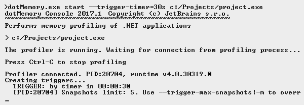 dotMemory 绑定了 dotMemory.exe 命令行分析器。 使用此工具自动完成分析:使分析成为持续集成生成的一部分,或者简单地加速分析例程(例如,如果您必须定期分析相同的应用程序,并且不希望每次都启动 dotMemory 用户界面)。