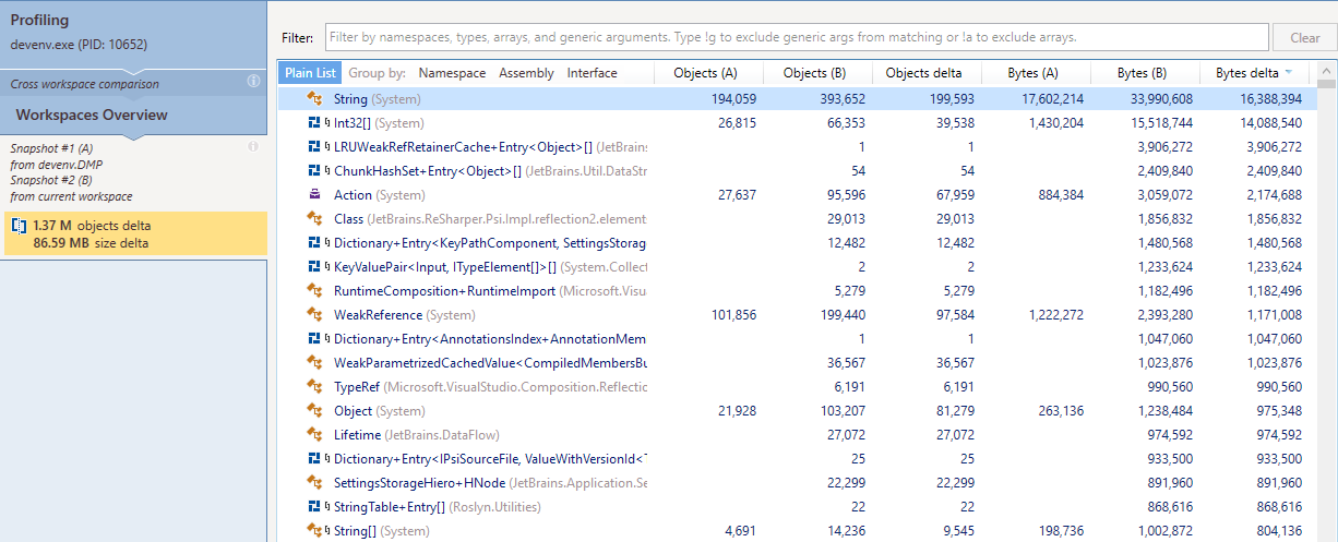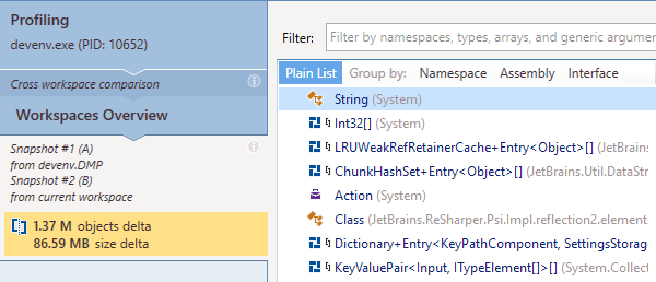 dotMemory 是一个 .NET 内存分析器,可以直接从 Visual Studio 启动,既可以作为 JetBrains Rider 的插件使用,也可以作为独立工具使用。