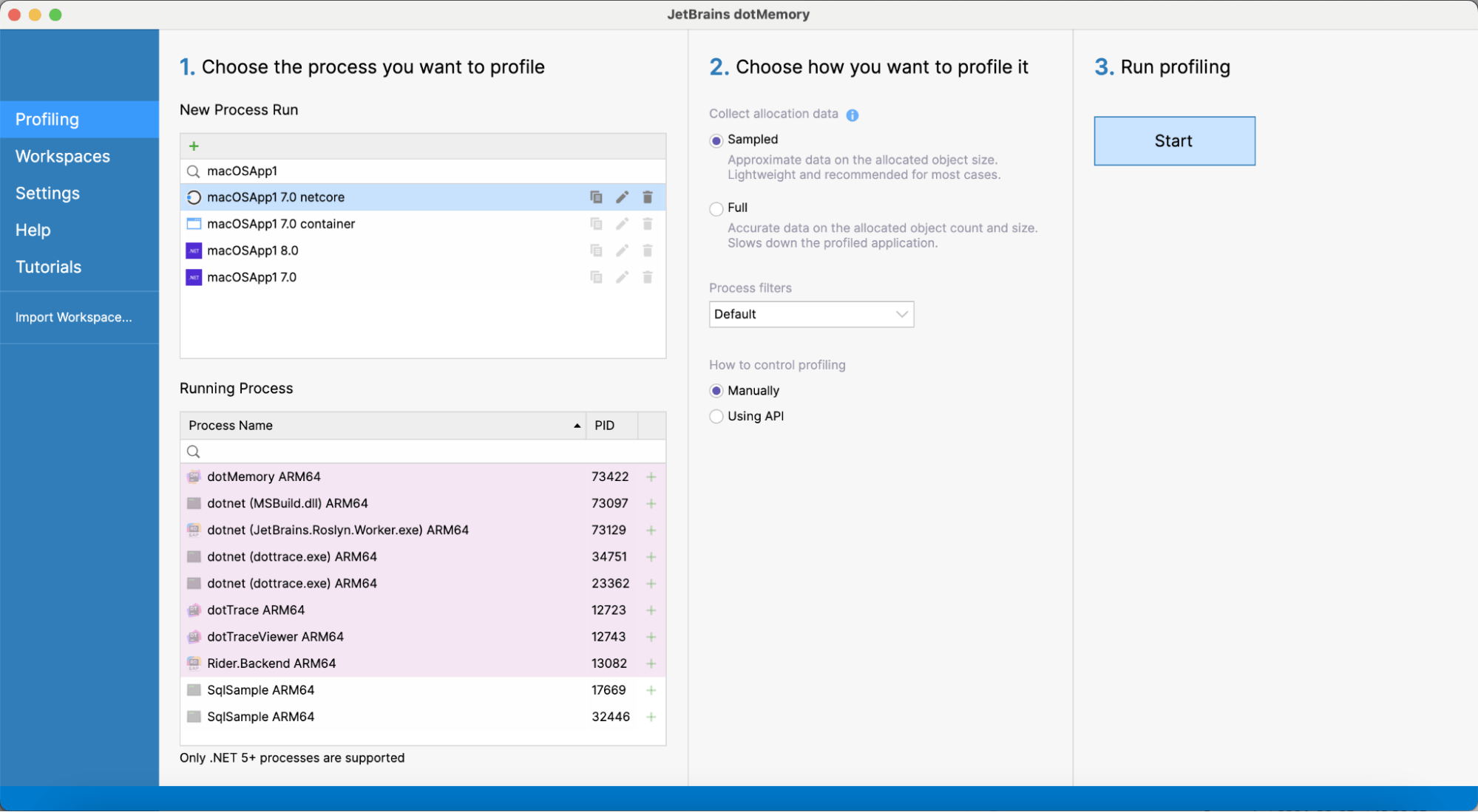 dotMemory 命令行工具现在可以在配备 Apple 芯片处理器的计算机上运行。 您现在可以使用 dotMemory CLT 分析 .NET 6 应用程序(原生模式)和 .NET 5 应用程序(Rosetta 2 模式)。
