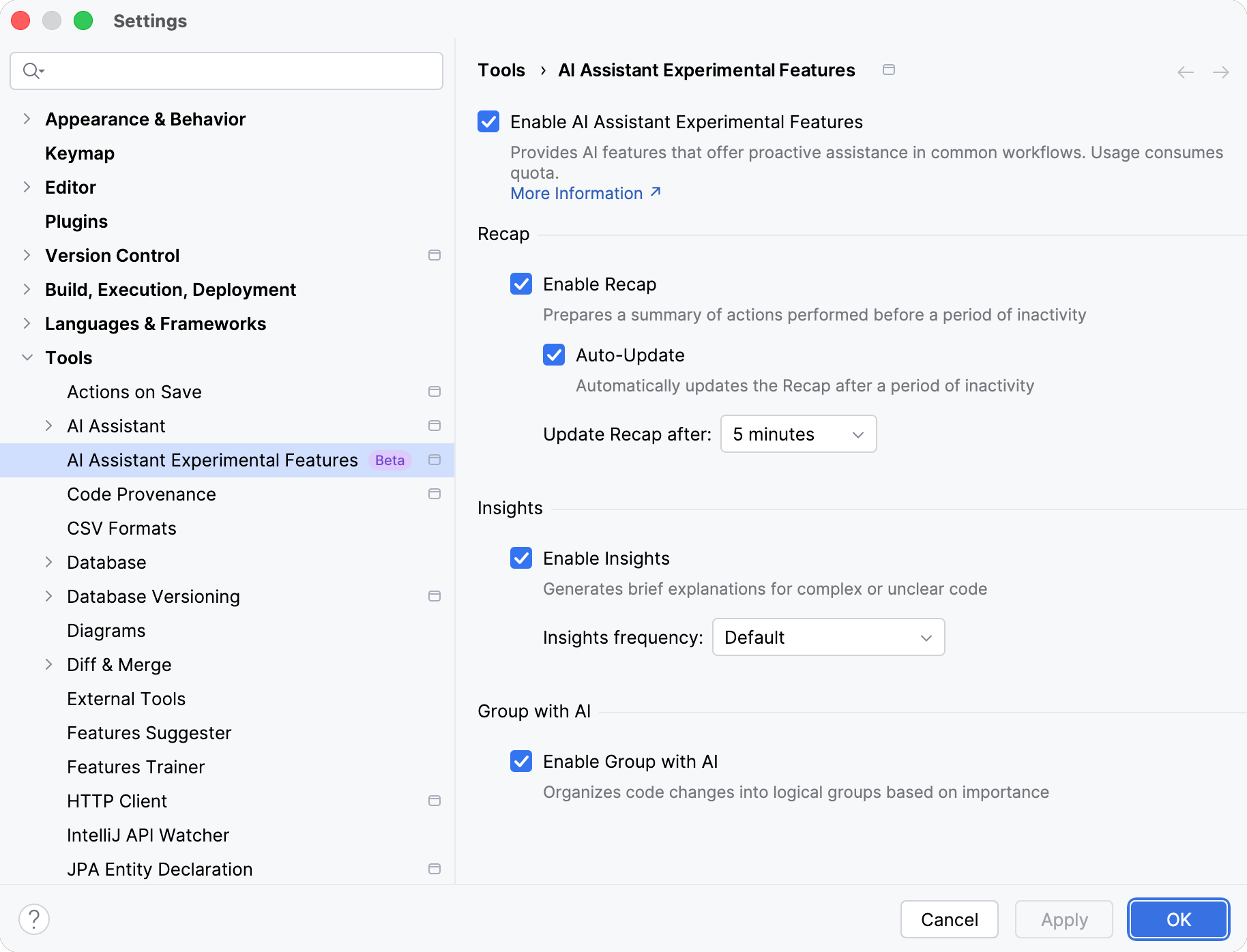 The Recap feature automatically generates a summary of your recent work to speed up context restoration. It highlights what was done and provides contextual hints, helping you to retrace your steps and continue working from where you left off.
