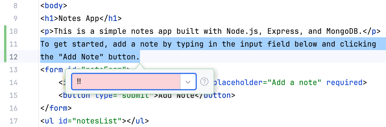 Also mind the color indication. If you type a valid Emmet abbreviation, the background is green. However, when a non-existent abbreviation is entered, the background turns red: