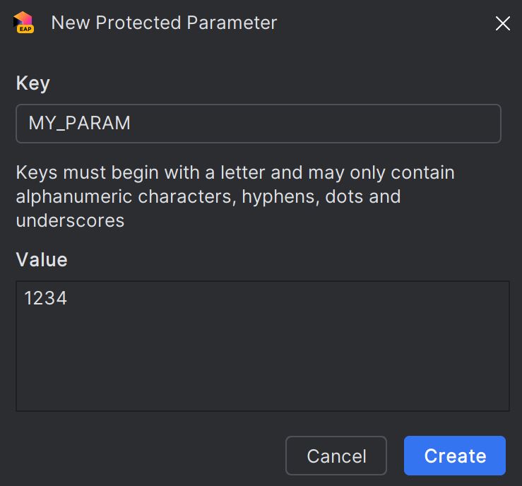 3. Click Create. The parameter will be saved in your personal storage in CodeCanvas.