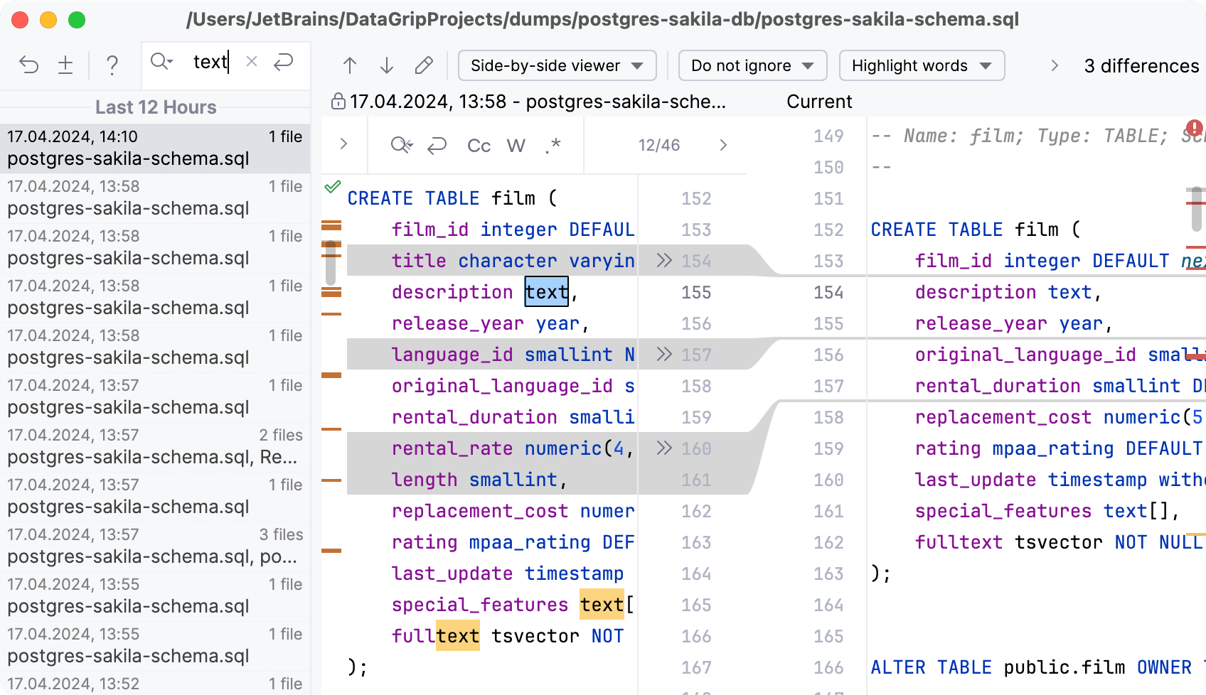In DataGrip, code editor allows you to write and edit SQL queries in query files, query consoles, SQL files, scratch files, and when you are working with database object definitions.