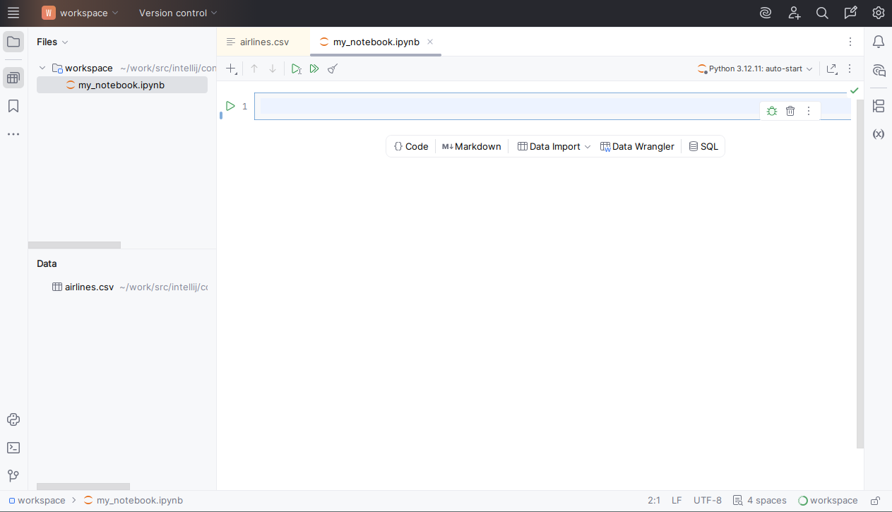 1. In the Files tool window, select the directory you want to create the notebook in. In our case, it is workspace. Then do one of the following: