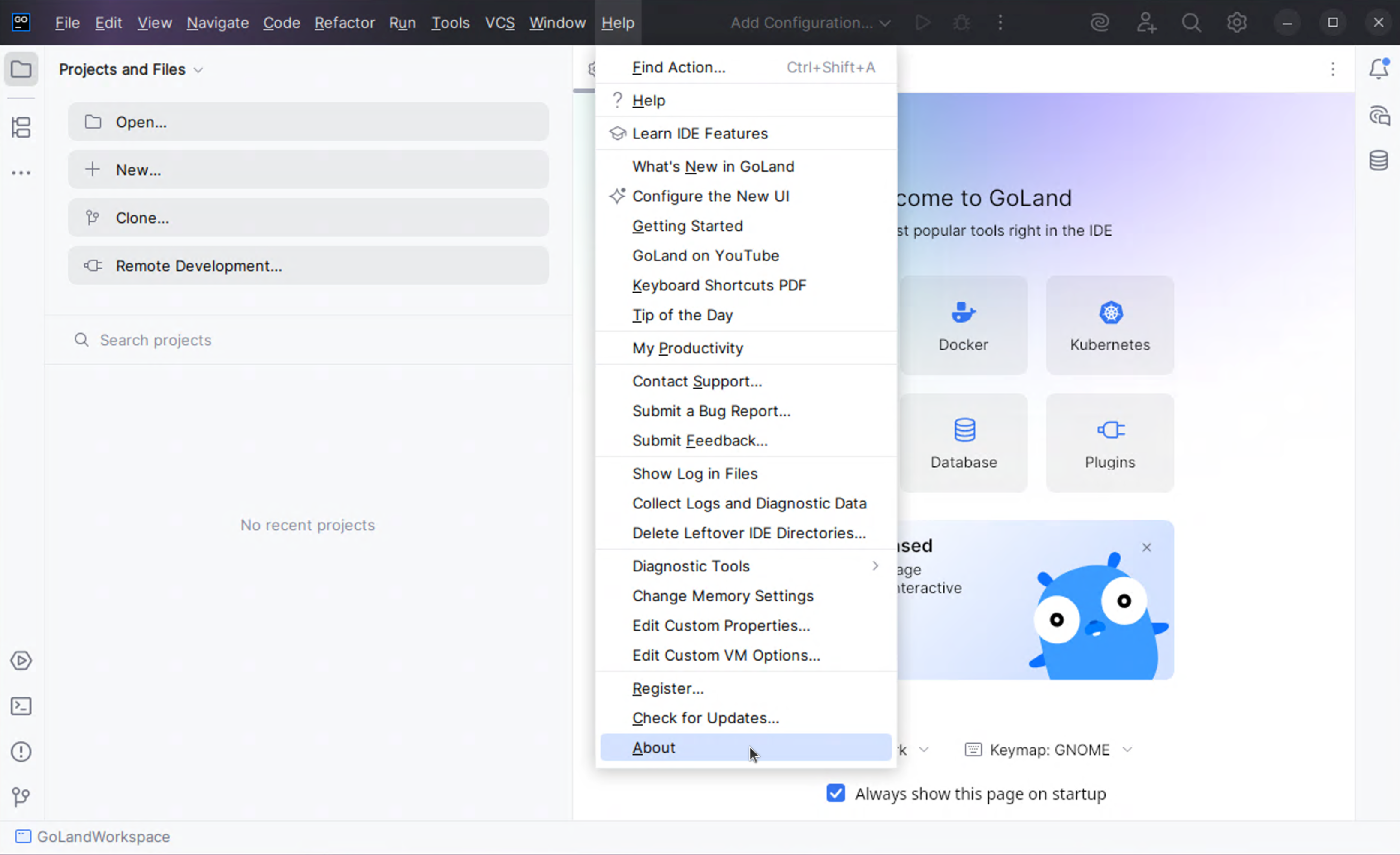 2. Click Help | Find Action Ctrl+Shift+A, type About, and press Enter.