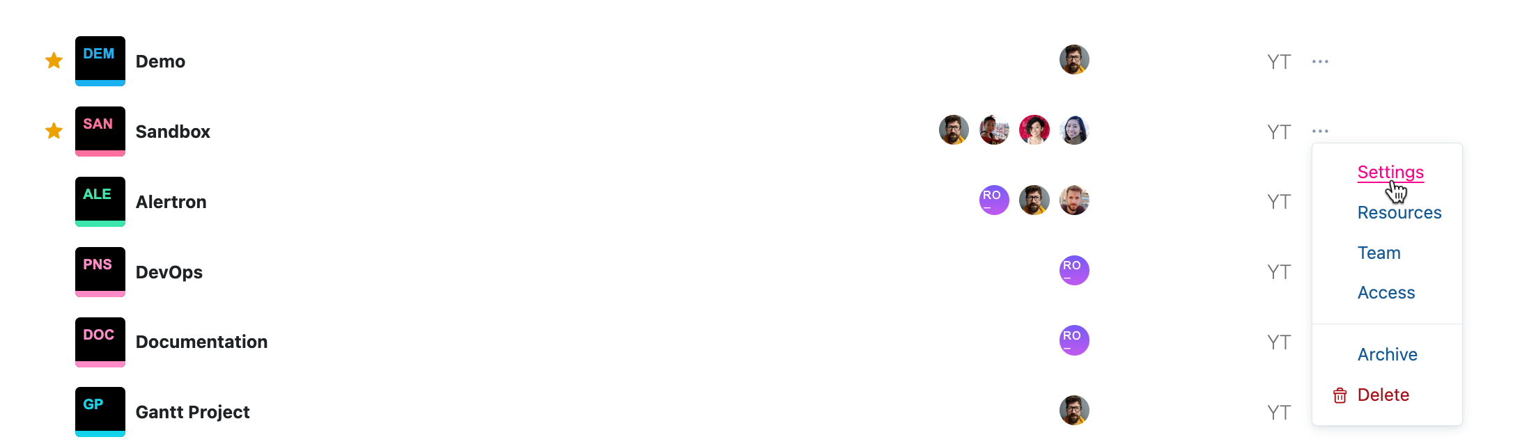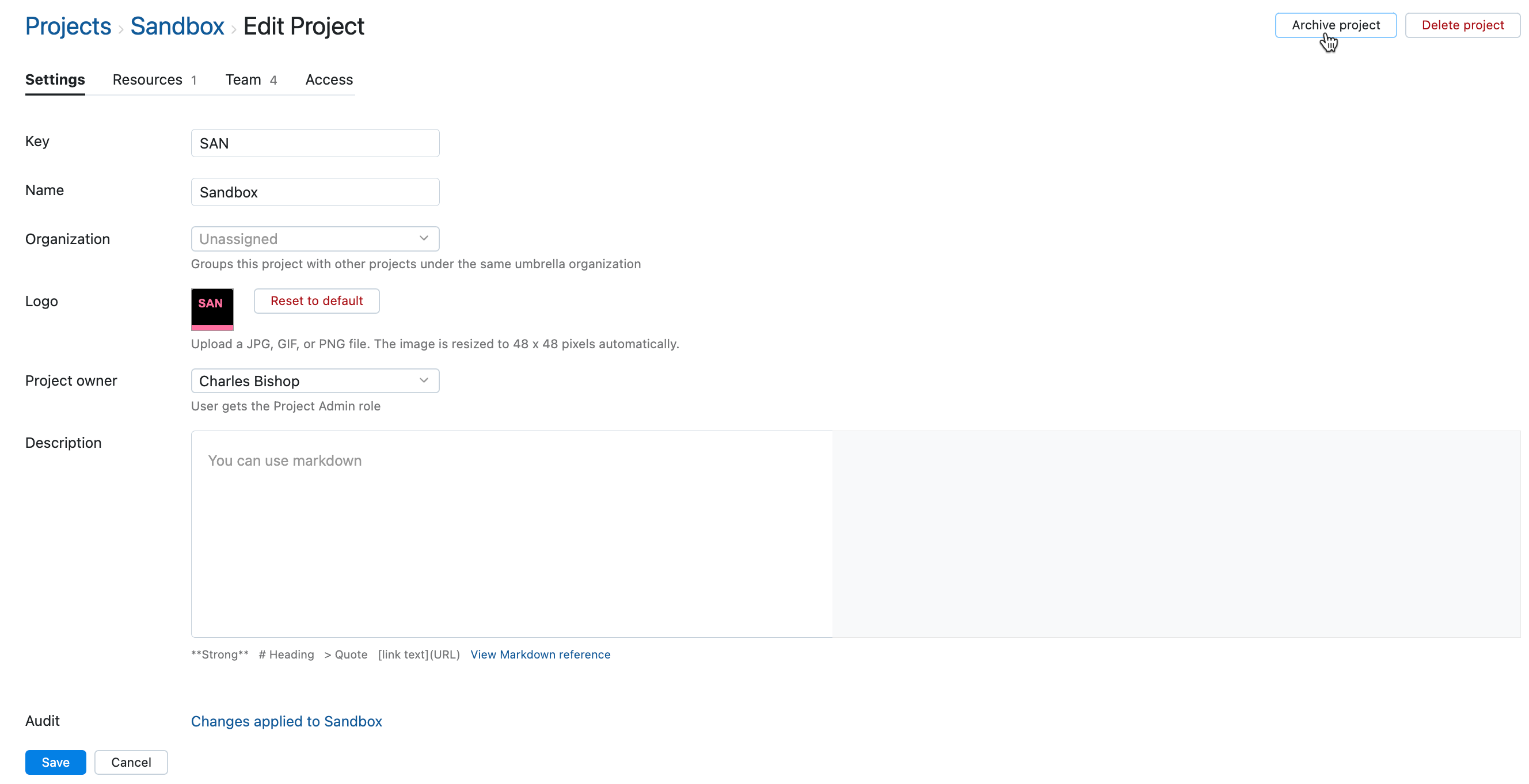 Open the project settings page of a project that you want to archive. You can do this in two ways: