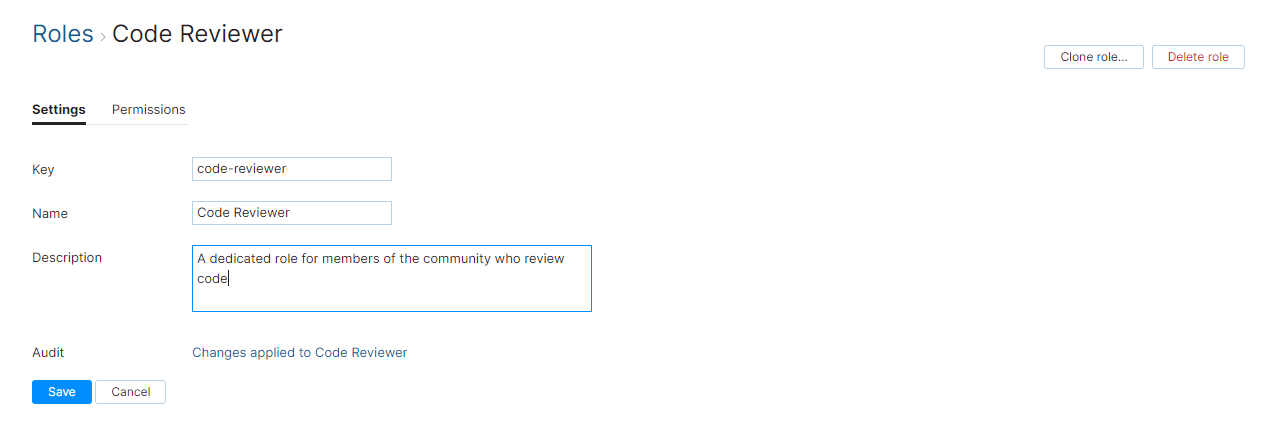 • The settings page for the new role opens to the General tab.