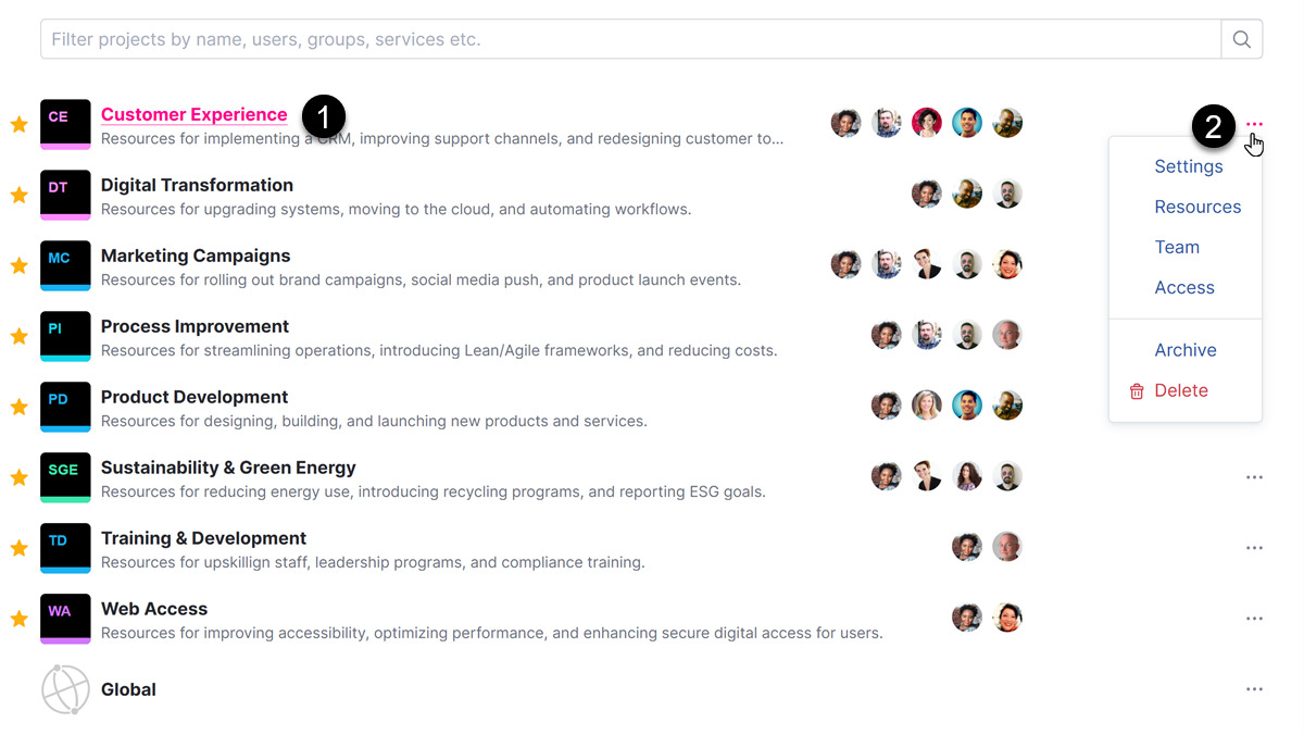 1. Click a project name to access its settings.