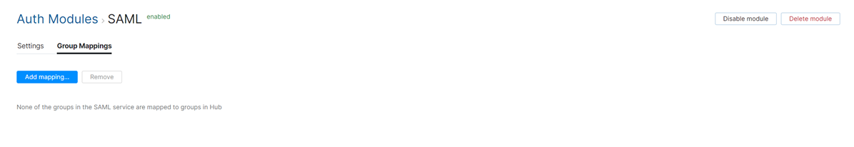 On the Group Mappings tab, you can map existing groups in the SAML service to the groups in Hub.