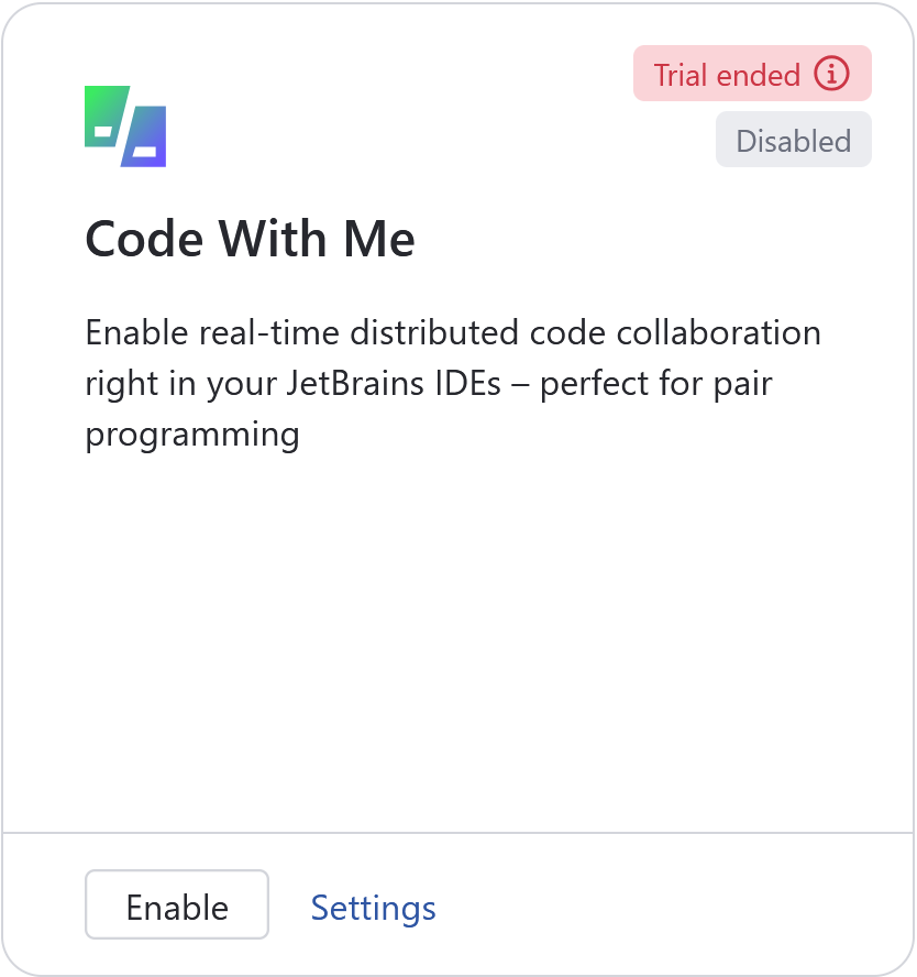 When the trial ends for IDE Provisioner, AI Enterprise or Code With Me Enterprise, the product will be disabled. No automatic transition to a paid subscription will occur. To activate the paid subscription, you have to Enable the product.