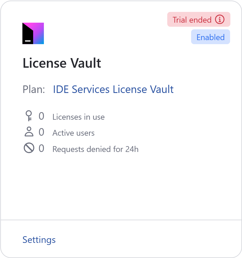 When the trial ends for License Vault, it will remain enabled but the trial All Products Pack license will expire, preventing end users from accessing the included tools. To continue using the tools, set new postpaid license limits in your IDE Services web UI.