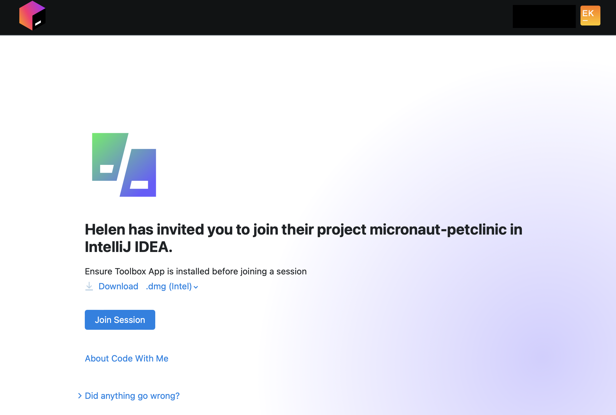 On the page that opens in a browser, make sure you have Toolbox App installed on your machine and click Join Session.
