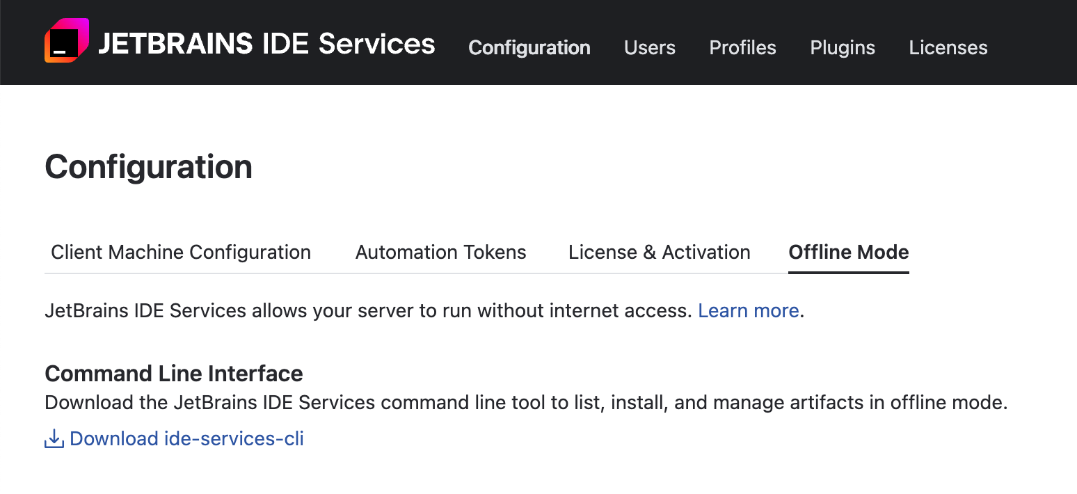 IDE Services comes with specific offline mode capabilities that allow you to run the server in a network-isolated environment.