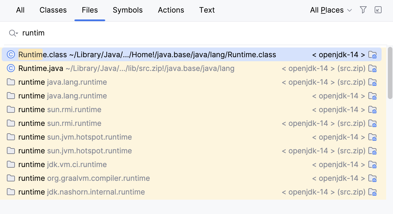 more...items or Ctrl+Up to return to the top of the search results.Press Tab to switch the context of your search to classes, files, symbols, actions, and so on.