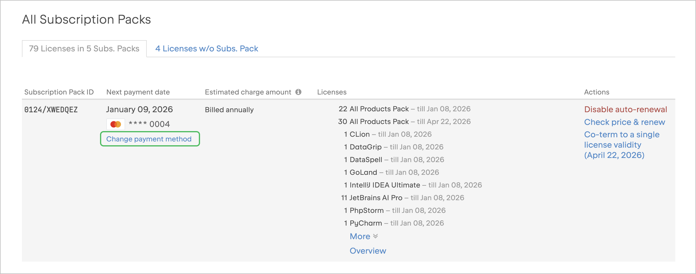As an organization or team admin, you can update the payment method for automatic subscription pack renewals.
