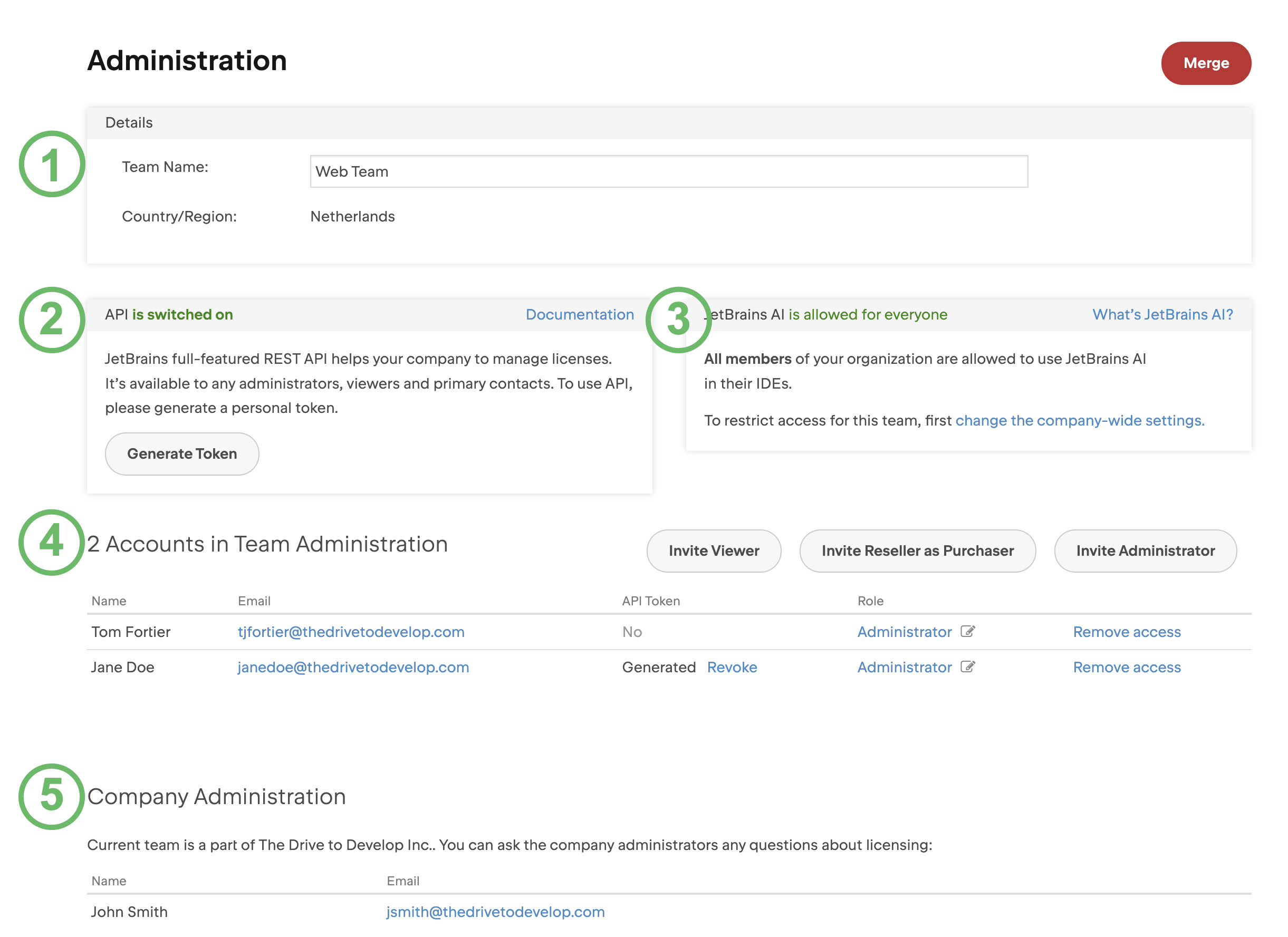 The new team is created immediately, and you become its admin. You can add other team admins, transfer licenses, and merge existing teams into it.